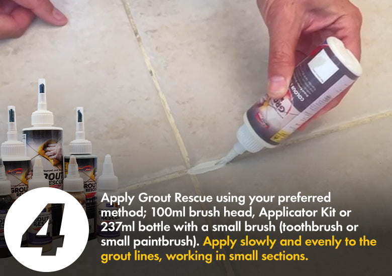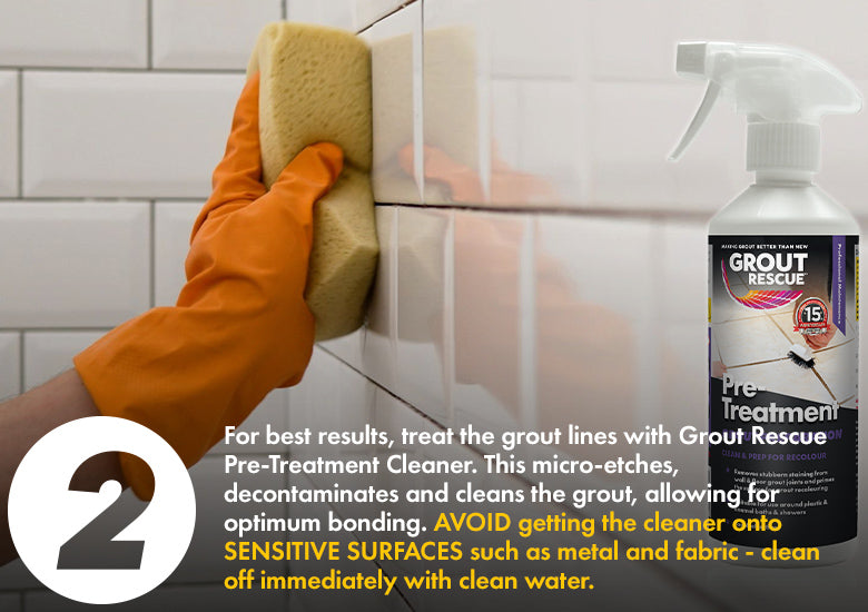 For optimal results, we recommend all grout to be colour sealed must be primed first with Grout Rescue Pre-Treatment – this easy to apply spray will remove dirt and grime and prep the surface so that Grout Rescue adheres perfectly.