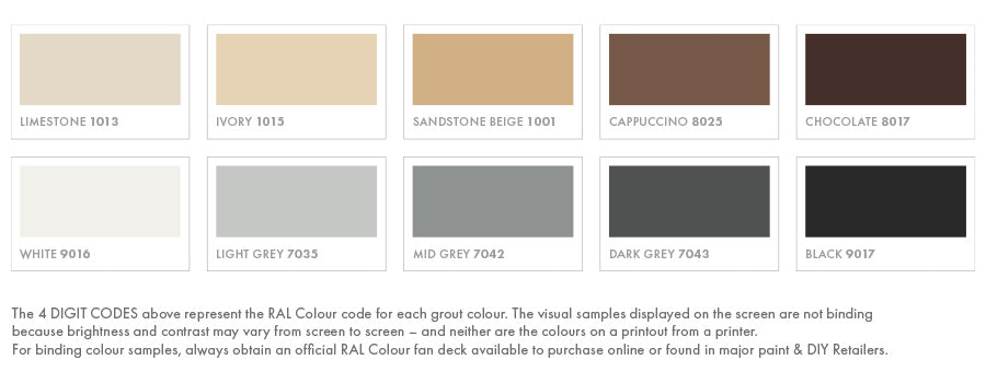 - Available in White, Light Grey, Mid Grey, Dark Grey, Black, Chocolate, Cappuccino, Sandstone, Limestone and Ivory