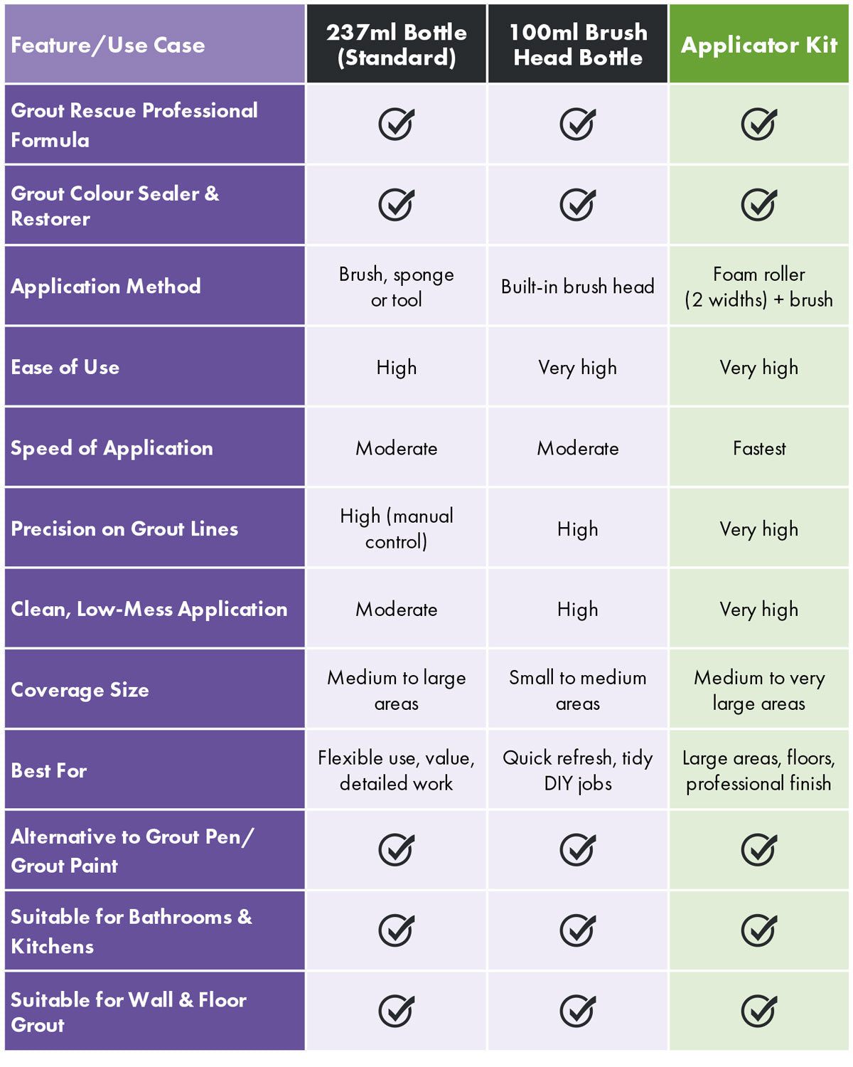 “Not sure which version is right for you? Choose based on how large the area is and how quickly you want to apply.”